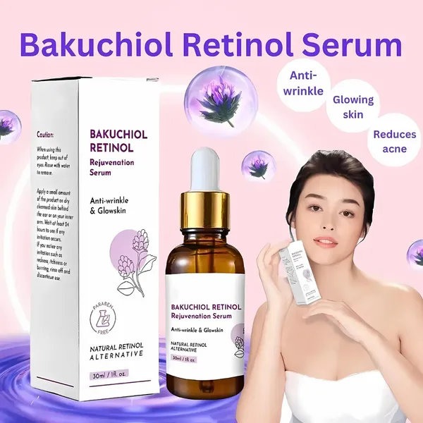 One of Bakuchiol's standout benefits is its ability to work similarly to retinol without causing common side effects like dryness, irritation, or increased sensitivity to sunlight. This makes Bakuchiol Retinol Rejuvenation Serum an ideal choice for those with sensitive skin or those unable to tolerate strong retinol-based products. The serum helps maintain skin moisture, leaving the skin feeling soft and smooth without causing dryness or flaking.
